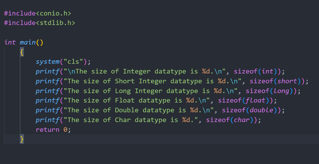#3 C Program to print the different datatype sizes